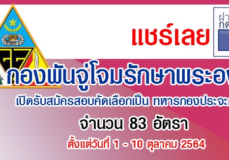 กองพันจู่โจมรักษาพระองค์ เปิดรับสมัครสอบคัดเลือกเป็น ทหารกองประจะการ 83 นาย รับสมัครตั้งแต่วันที่ 1 – 10 ตุลาคม 2564