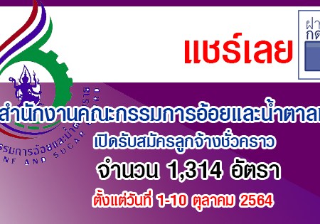 สำนักงานคณะกรรมการอ้อยและน้ำตาลทราย เปิดรับสมัครลูกจ้างชั่วคราว 1,314 อัตรา สมัครด้วยตนเอง ตั้งแต่วันที่ 1-10 ตุลาคม 2564