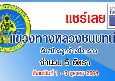 แขวงทางหลวงชนบทน่าน รับสมัครลูกจ้างชั่วคราว 5 อัตรา รับสมัครด้วยตนเอง ตั้งแต่วันที่ 1 – 5 ตุลาคม 2564