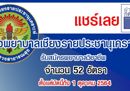 โรงพยาบาลเชียงรายประชานุเคราะห์ รับสมัครพยาบาลวิชาชีพ 52 อัตรา สมัครด้วยตนเอง ตั้งแต่บัดนี้ถึง 1 ตุลาคม 2564