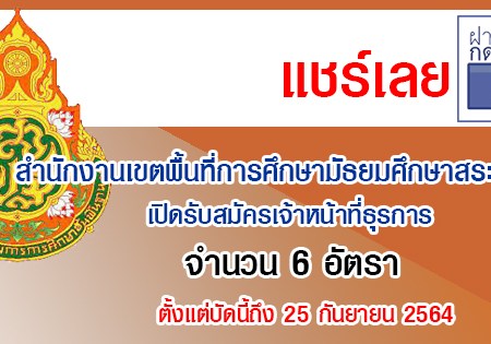 สำนักงานเขตพื้นที่การศึกษามัธยมศึกษาสระแก้ว เปิดรับสมัครเจ้าหน้าที่ธุรการ 6 อัตรา สมัครด้วยตนเอง ตั้งแต่บัดนี้ถึง 25 กันยายน 2564