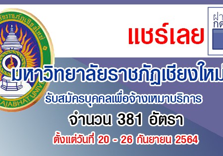 มหาวิทยาลัยราชภัฏเชียงใหม่ รับสมัครบุคคลเพื่อจ้างเหมาบริการ 381 อัตรา รับสมัครทางอิเทอร์เน็ต ตั้งแต่วันที่ 20 – 26 กันยายน 2564