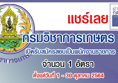 กรมวิชาการเกษตร เปิดรับสมัครสอบเป็นพนักงานราชการ 1 อัตรา รับสมัครด้วยตนเอง ตั้งแต่วันที่ 1 – 30 ตุลาคม 2564