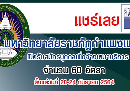 มหาวิทยาลัยราชภัฏกำแพงเพชร รับสมัครบุคคลเพื่อจ้างเหมาบริการ 60 อัตรา รับสมัครทางอินเทอร์เน็ต ตั้งแต่วันที่ 20-24 กันยายน 2564