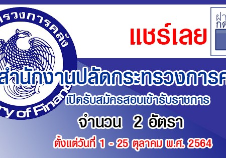 สำนักงานปลัดกระทรวงการคลัง เปิดรับสมัครสอบเข้ารับราชการ 2 อัตรา รับสมัครทางอินเทอร์เน็ต ตั้งแต่วันที่ 1 – 25 ตุลาคม พ.ศ. 2564