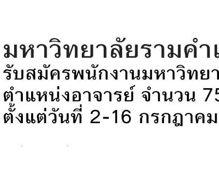 มหาวิทยาลัยรามคำแหง รับสมัครพนักงานมหาวิทยาลัย ตำแหน่งอาจารย์ 75 อัตรา รับสมัครด้วยตนเอง ตั้งแต่วันที่ 2-16 กรกฎาคม 2564