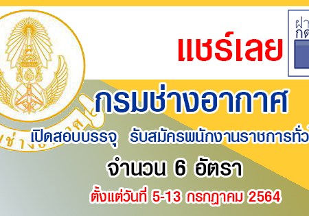 กรมช่างอากาศ รับสมัครพนักงานราชการทั่วไป 6 อัตรา สมัครด้วยตนเอง ตั้งแต่วันที่ 5-13 กรกฎาคม 2564