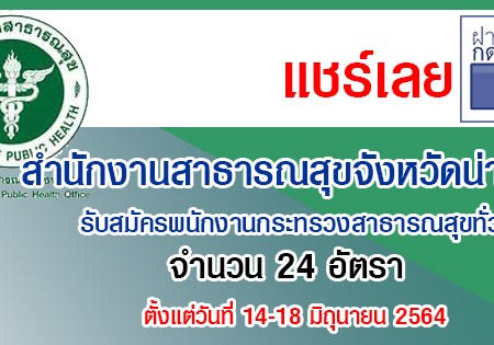 สำนักงานสาธารณสุขจังหวัดน่าน รับสมัครพนักงานกระทรวงสาธารณสุขทั่วไป 24 อัตรา สมัครด้วยตนเอง ตั้งแต่วันที่ 14-18 มิถุนายน 2564