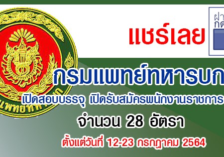 กรมแพทย์ทหารบก รับสมัครพนักงานราชการ 28 อัตรา สมัครด้วยตนเอง ตั้งแต่วันที่ 12-23 กรกฎาคม 2564
