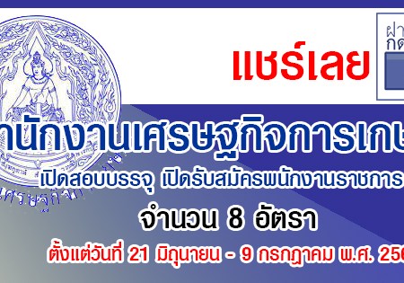 สำนักงานเศรษฐกิจการเกษตร เปิดรับสมัครสอบเพื่อเข้ารับราชการ จำนวน 8 อัตรา รับสมัครทางอินเทอร์เน็ต ตั้งแต่วันที่ 21 มิถุนายน – 9 กรกฎาคม พ.ศ. 2564