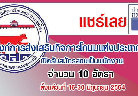 องค์การส่งเสริมกิจการโคนมแห่งประเทศไทย เปิดรับสมัครสอบเป็นพนักงาน 10 อัตรา รับสมัครทางอินเทอร์เน็ต ตั้งแต่วันที่ 16-30 มิถุนายน 2564