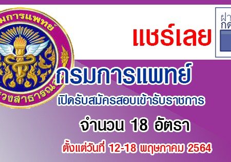 กรมการแพทย์ เปิดรับสมัครสอบเข้ารับราชการ จำนวน 18 อัตรา รับสมัครทางอินเทอร์เน็ต ตั้งแต่วันที่ 12-18 พฤษภาคม 2564