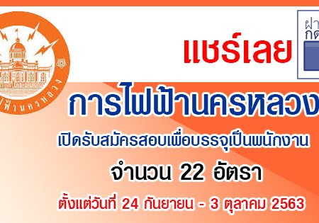 การไฟฟ้านครหลวง เปิดรับสมัครสอบเพื่อบรรจุเป็นพนักงาน จำนวน 22 อัตรา รับสมัครทางอินเตอร์เน็ต ตั้งแต่วันที่ 24 กันยายน – 3 ตุลาคม 2563