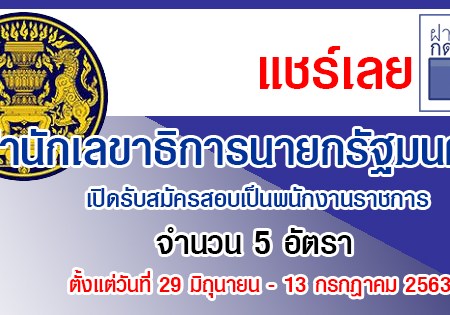 สำนักเลขาธิการนายกรัฐมนตรี เปิดรับสมัครสอบเป็นพนักงานราชการ จำนวน 5 อัตรา รับสมัครทางอินเทอร์เน็ต ตั้งแต่วันที่ 29 มิถุนายน – 13 กรกฎาคม 2563