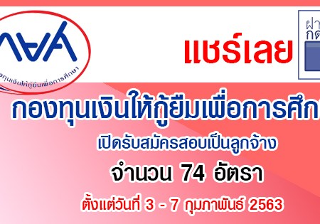 กองทุนเงินให้กู้ยืมเพื่อการศึกษา (กยศ.) เปิดรับสมัครสอบเป็นลูกจ้าง จำนวน 74 อัตรา รับสมัครทางอินเทอร์เน็ต ตั้งแต่วันที่ 3 – 7 กุมภาพันธ์ 2563