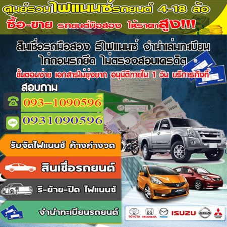 รับจัดไฟแนนซ์รถมือสอง สินเชื่อทะเบียนรถ จัดง่ายไม่ยุ่งยาก ไม่เช็คเครดิต