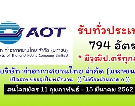 กุมภาพันธ์ 5, 2019 spgroupthailand บริษัท ท่าอากาศยานไทย จำกัด เปิดรับสมัครสอบเพื่อคัดเลือกเป็นพนักงานและลูกจ้าง จำนวน 794 อัตรา รับสมัครด้วยตนเอง ตั้งแต่วันที่ 11 กุมภาพันธ์ – 15 มีนาคม 2562