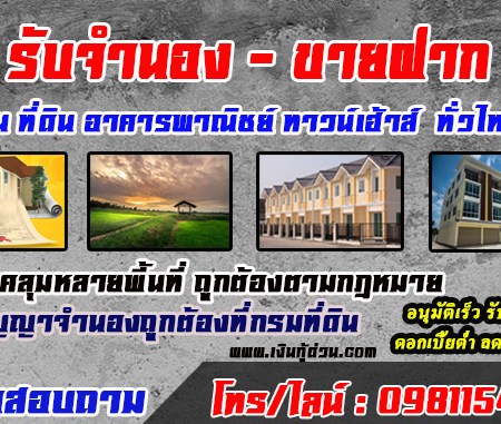 จำนองที่ดิน จำนองที่ไร่ รับจำนองที่นา จำนองอาคารพาณิชย์ จำนองอพาร์ทเม้นท์ เงินด่วน พร้อมใช้ สินเชื่อ เงินสด