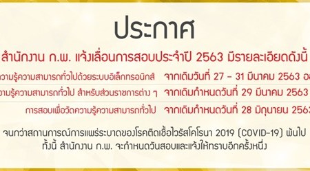 สมัครสอบ ก.พ. 2563 เปิดสอบ กพ. ภาค ก ประจำปี 63 (เลื่อนสอบ)