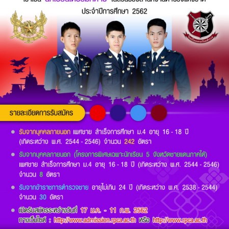 มกราคม 14, 2019 spgroupthailand เปิดรับสมัครสอบเข้าเป็นนักเรียนเตรียมทหาร ประจำปี 2562 ทั้ง 4 เหล่า กองทัพบก กองทัพเรือ กองทัพอากาศ สำนักงานตำรวจแห่งชาติ