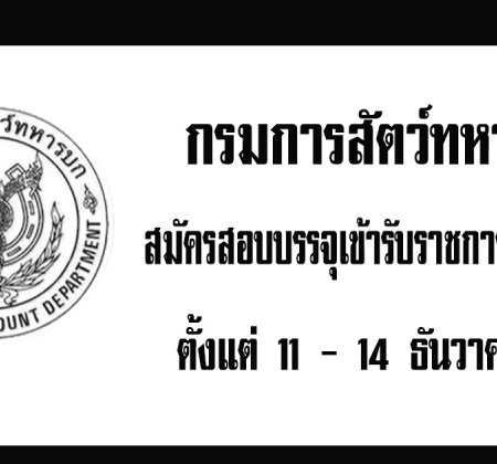 ธันวาคม 1, 2018 spgroupthailand กรมการสัตว์ทหารบก เปิดรับสมัครสอบบรรจุเข้ารับราชการ จำนวน 60 อัตรา รับสมัครด้วยตนเอง ตั้งแต่วันที่ 11 – 14 ธันวาคม 2561