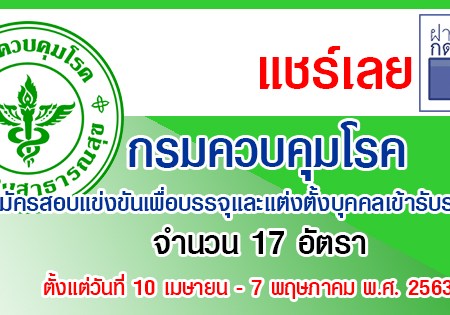 เมษายน 5, 2020 spgroupthailand กรมควบคุมโรค เปิดรับสมัครสอบเพื่อบรรจุบุคคลเข้ารับราชการ จำนวน 17 อัตรา รับสมัครทางอินเทอร์เน็ต ตั้งแต่วันที่ 10 เมษายน – 7 พฤษภาคม 2563