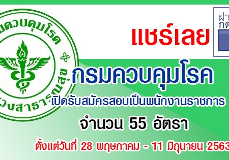 พ.ค. 24, 2020 spgroupthailand กรมควบคุมโรค เปิดรับสมัครสอบเป็นพนักงานราชการ จำนวน 55 อัตรา รับสมัครทางอินเทอร์เน็ต ตั้งแต่วันที่ 28 พฤษภาคม – 11 มิถุนายน 2563