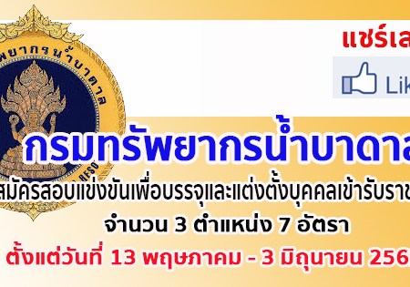 พ.ค. 6, 2019 spgroupthailand กรมทรัพยากรน้ำบาดาล รับสมัครสอบแข่งขันเพื่อบรรจุและแต่งตั้งบุคคลเข้ารับราชการ จำนวน 3 ตำแหน่ง 7 อัตรา สมัครออนไลน์ตั้งแต่วันที่ 13 พฤษภาคม – 3 มิถุนายน 2562