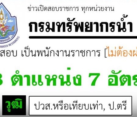 มิถุนายน 2, 2020 spgroupthailand กรมทรัพยากรน้ำ เปิดรับสมัครสอบเป็นพนักงานราชการ จำนวน 7 อัตรา รับสมัครทางอินเทอร์เน็ต ตั้งแต่วันที่ 9 – 15 มิถุนายน 2563