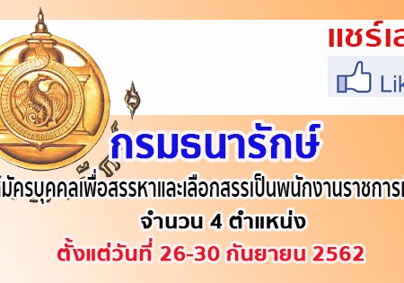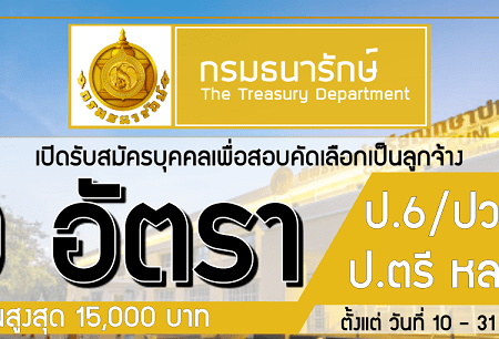 กรมธนารักษ์ เปิดรับสมัครสอบเป็นพนักงานราชการ จำนวน 4 อัตรา รับสมัครทางอินเทอร์เน็ต ตั้งแต่วันที่ 20 – 26 กันยายน 2562