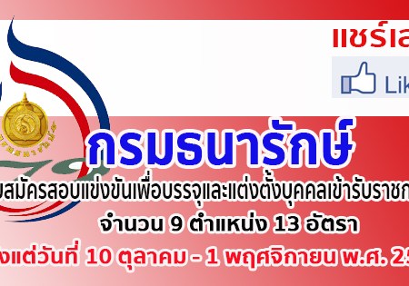กรมธนารักษ์ เปิดรับสมัครสอบเพื่อบรรจุบุคคลเข้ารับราชการ จำนวน 13 อัตรา รับสมัครทางอินเทอร์เน็ต ตั้งแต่วันที่ 10 ตุลาคม – 1 พฤศจิกายน 2562