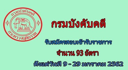 ธันวาคม 28, 2018 spgroupthailand กรมบังคับคดี เปิดรับสมัครสอบเพื่อบรรจุบุคคลเข้ารับราชการ จำนวน 93 อัตรา รับสมัครทางอินเทอร์เน็ต ตั้งแต่วันที่ 9 – 29 มกราคม 2562