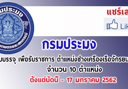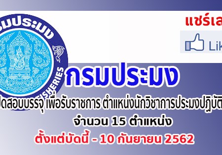 กรมประมง เปิดรับสมัครสอบเพื่อบรรจุบุคคลเข้ารับราชการ จำนวน 15 อัตรา รับสมัครทางอินเทอร์เน็ต ตั้งแต่วันที่ 20 สิงหาคม – 10 กันยายน 2562