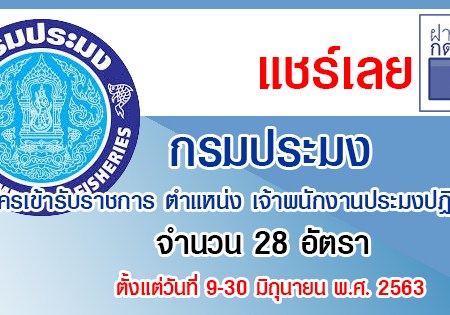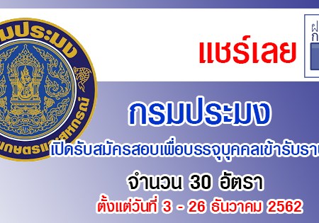 กรมประมง เปิดรับสมัครสอบเพื่อบรรจุบุคคลเข้ารับราชการ จำนวน 30 อัตรา รับสมัครทางอินเทอร์เน็ต ตั้งแต่วันที่ 3 – 26 ธันวาคม 2562