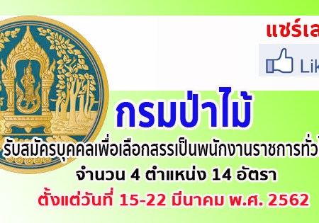 กรมป่าไม้ เปิดรับสมัครสอบเป็นพนักงานราชการ จำนวน 14 อัตรา รับสมัครทางอินเทอร์เน็ต ตั้งแต่วันที่ 15 – 22 มีนาคม 2562