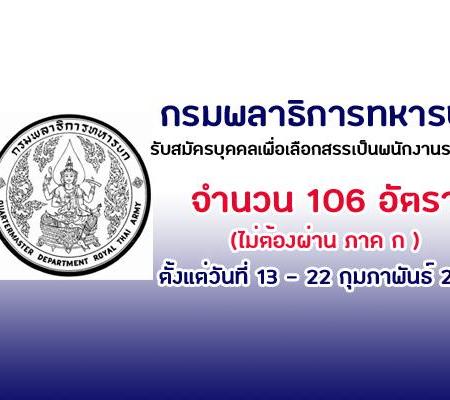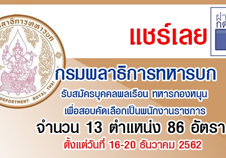 กรมพลาธิการทหารบก รับสมัครสอบคัดเลือกบุคคลพลเรือน ทหารกองหนุน เพื่อสอบคัดเลือกบรรจุเข้ารับราชการเป็นนายทหารประทวน (อัตรา สิบเอก) ประจำปีงบประมาณ 2562 จำนวน 16 อัตรา (ชาย-หญิง) ตั้งแต่วันที่ 29 เมษายน – 3 พฤษภาคม 2562