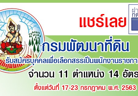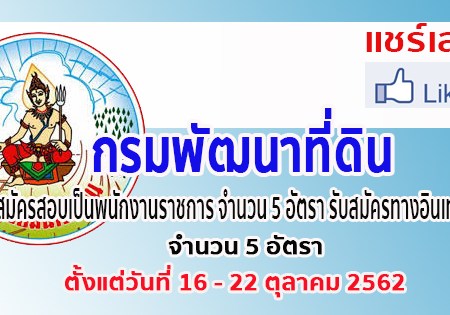 กรมพัฒนาที่ดิน เปิดรับสมัครสอบเป็นพนักงานราชการ จำนวน 5 อัตรา รับสมัครทางอินเทอร์เน็ต ตั้งแต่วันที่ 16 – 22 ตุลาคม 2562