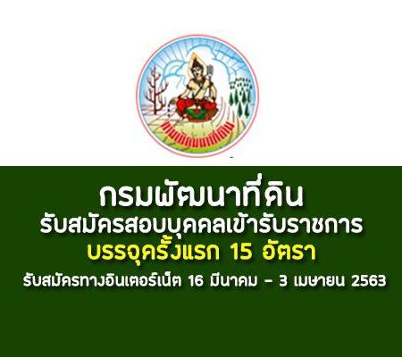 กรมพัฒนาที่ดิน เปิดรับสมัครสอบเพื่อบรรจุบุคคลเข้ารับราชการ จำนวน 15 อัตรา รับสมัครทางอินเทอร์เน็ต ตั้งแต่วันที่ 16 มีนาคม – 3 เมษายน 2563