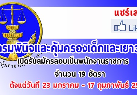 มกราคม 22, 2019 spgroupthailand กรมพินิจและคุ้มครองเด็กและเยาวชน เปิดรับสมัครสอบเป็นพนักงานราชการ จำนวน 19 อัตรา รับสมัครทางอินเทอร์เน็ต ตั้งแต่วันที่ 23 มกราคม – 17 กุมภาพันธ์ 2562