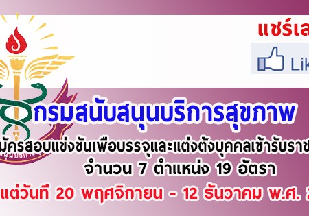 พฤศจิกายน 25, 2018 spgroupthailand กรมสนับสนุนบริการสุขภาพ เปิดรับสมัครสอบเพื่อบรรจุบุคคลเข้ารับราชการ จำนวน 19 อัตรา รับสมัครทางอินเทอร์เน็ต ตั้งแต่วันที่ 20 พฤศจิกายน – 12 ธันวาคม 2561