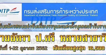 กันยายน 23, 2019 spgroupthailand กรมส่งเสริมการค้าระหว่างประเทศ เปิดรับสมัครสอบเพื่อบรรจุบุคคลเข้ารับราชการ จำนวน 10 อัตรา รับสมัครทางอินเทอร์เน็ต ตั้งแต่วันที่ 1 – 22 ตุลาคม 2562