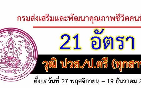 พฤศจิกายน 25, 2019 spgroupthailand กรมส่งเสริมและพัฒนาคุณภาพชีวิตคนพิการ เปิดรับสมัครสอบเพื่อบรรจุบุคคลเข้ารับราชการ จำนวน 21 อัตรา รับสมัครทางอินเทอร์เน็ต ตั้งแต่วันที่ 27 พฤศจิกายน – 19 ธันวาคม 2562