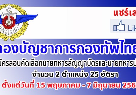 พ.ค. 6, 2019 spgroupthailand กองบัญชาการกองทัพไทย เปิดรับสมัครสอบเพื่อบรรจุเข้ารับราชการ จำนวน 25 อัตรา สมัครทางอินเทอร์เน็ต ตั้งแต่วันที่ 15 พฤษภาคม – 7 มิถุนายน 2562