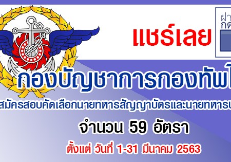 กุมภาพันธ์ 26, 2020 spgroupthailand กองบัญชาการกองทัพไทย เปิดรับสมัครสอบเพื่อบรรจุเข้ารับราชการ จำนวน 59 อัตรา สมัครทางอินเทอร์เน็ต ตั้งแต่วันที่ 1 – 31 มีนาคม 2563