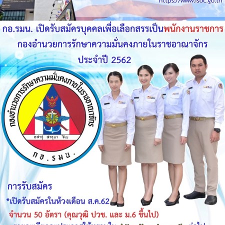 กรกฎาคม 16, 2019 spgroupthailand กอ.รมน. เตรียมเปิดรับสมัครสอบเป็นพนักงานราชการ จำนวน 50 อัตรา รับสมัครห้วงเดือนสิงหาคม 2562