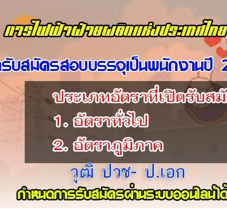 มิถุนายน 17, 2020 spgroupthailand การไฟฟ้าฝ่ายผลิตแห่งประเทศไทย (กฟผ.) เตรียมเปิดรับสมัครสอบเพื่อบรรจุเป็นพนักงาน ประจำปี 2563 รับสมัครทางอินเทอร์เน็ต ตั้งแต่วันที่ 15 – 31 กรกฎาคม 2563