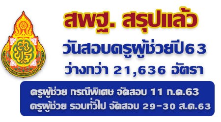 เปิดสอบครูผู้ช่วย ประจำปี 2563 สังกัด สพฐ. จำนวน 21,636 อัตรา รอบทั่วไปสอบวันที่ 29 – 30 สิงหาคม 2563