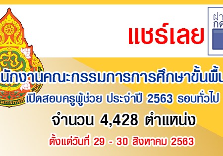 เปิดสอบครูผู้ช่วย ประจำปี 2563 รอบทั่วไป สังกัด สพฐ. จำนวน 10,438 อัตรา จะสอบในวันที่ 29 – 30 สิงหาคม 2563