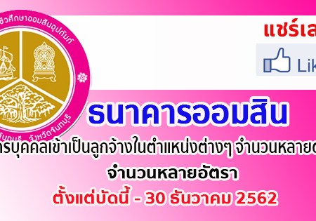 กุมภาพันธ์ 20, 2019 spgroupthailand ธนาคารออมสิน รับสมัครบุคคลเข้าเป็นลูกจ้างในตำแหน่งต่างๆ จำนวนหลายตำแหน่ง หลายอัตรา ตั้งแต่บัดนี้ – 30 ธันวาคม 2562