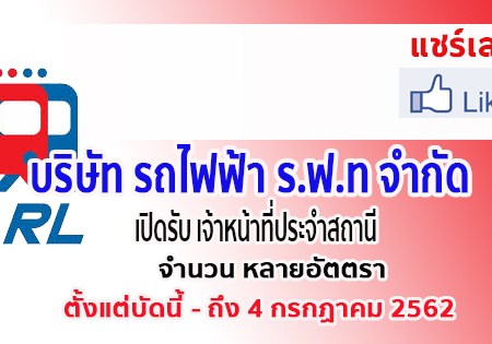 กรกฎาคม 3, 2019 spgroupthailand บริษัท รถไฟฟ้า ร.ฟ.ท จำกัด เปิดรับ เจ้าหน้าที่ประจำสถานี หลายอัตรา ถึง 4 กรกฏาคม 2562